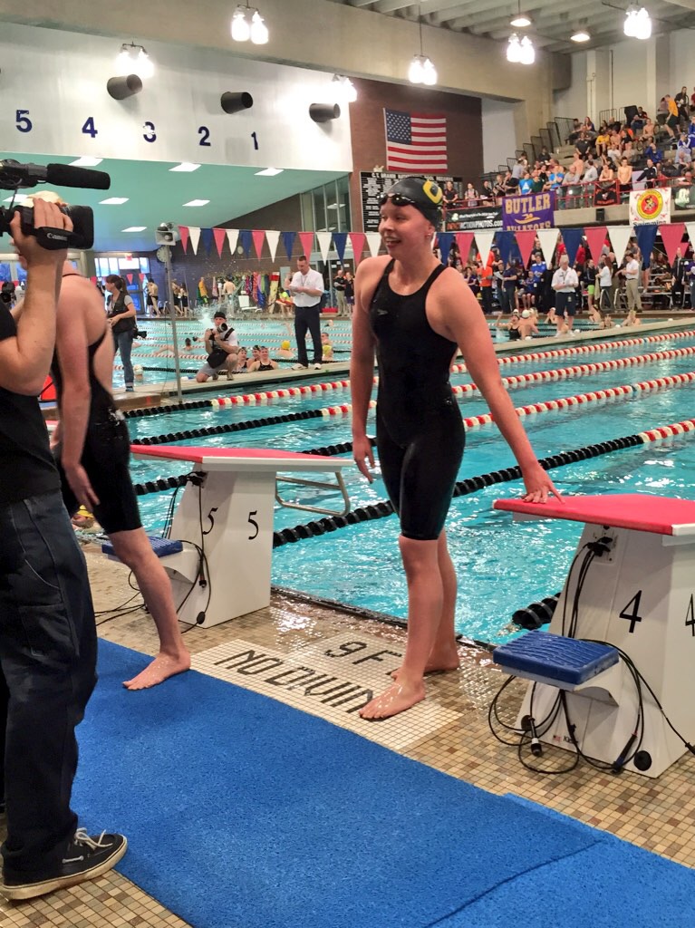 Louisville recruit, senior Grace Ann Long swam to a 1:48.71 finish in the 200 freestyle. Defending state champion and USC recruit, Sydney Lofquist took over the 200 IM and dominated the 500 freestyle. Lofquist, a senior at Cincinnati Ursuline Academy, swam to a 1:59.91 to hold her state title and the only girl under the two-minute mark. Earning herself a standing ovation, Lofquist touched at 4:44.40 breaking Olympic gold medalist Diana Munz 1999 record.