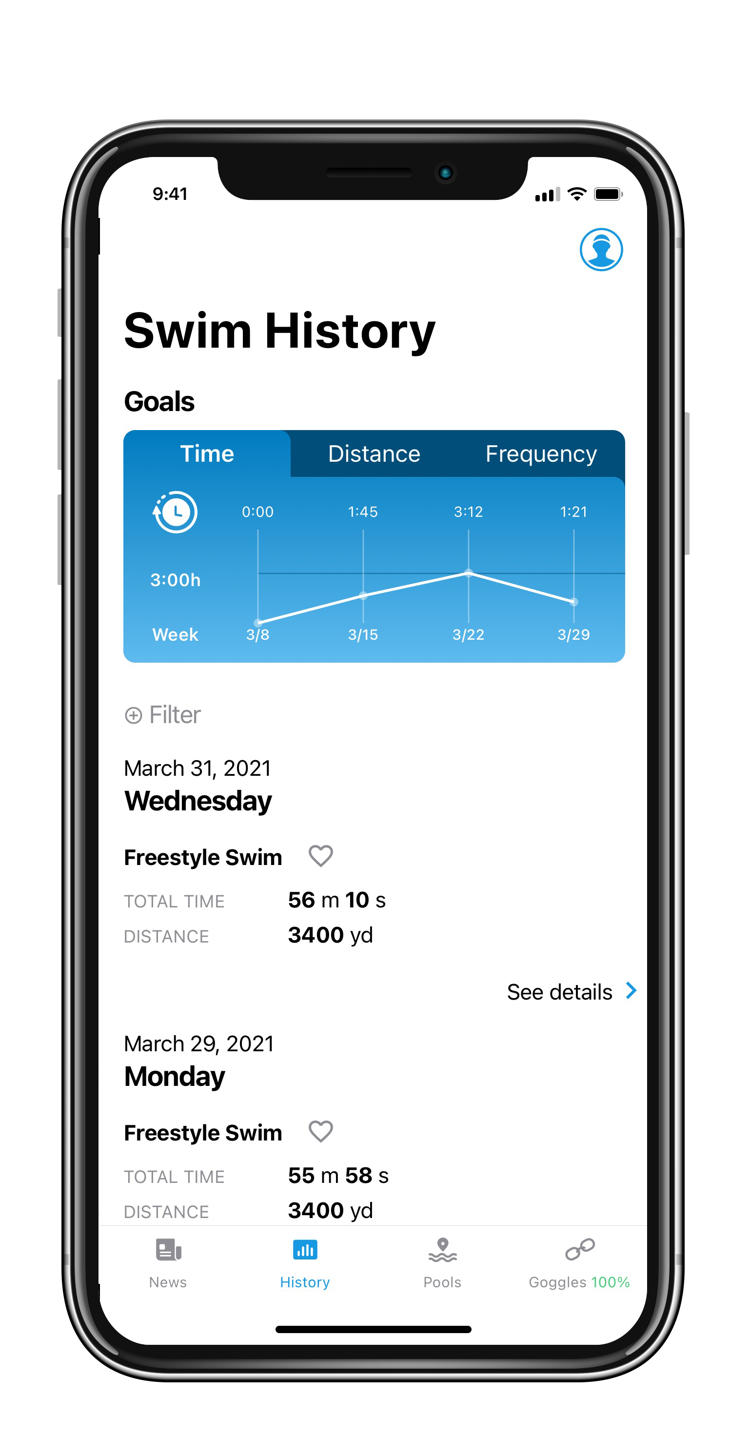 Once you have completed your swim, the Smart Goggle will automatically pair with the Ciye™ app and upload your workout.