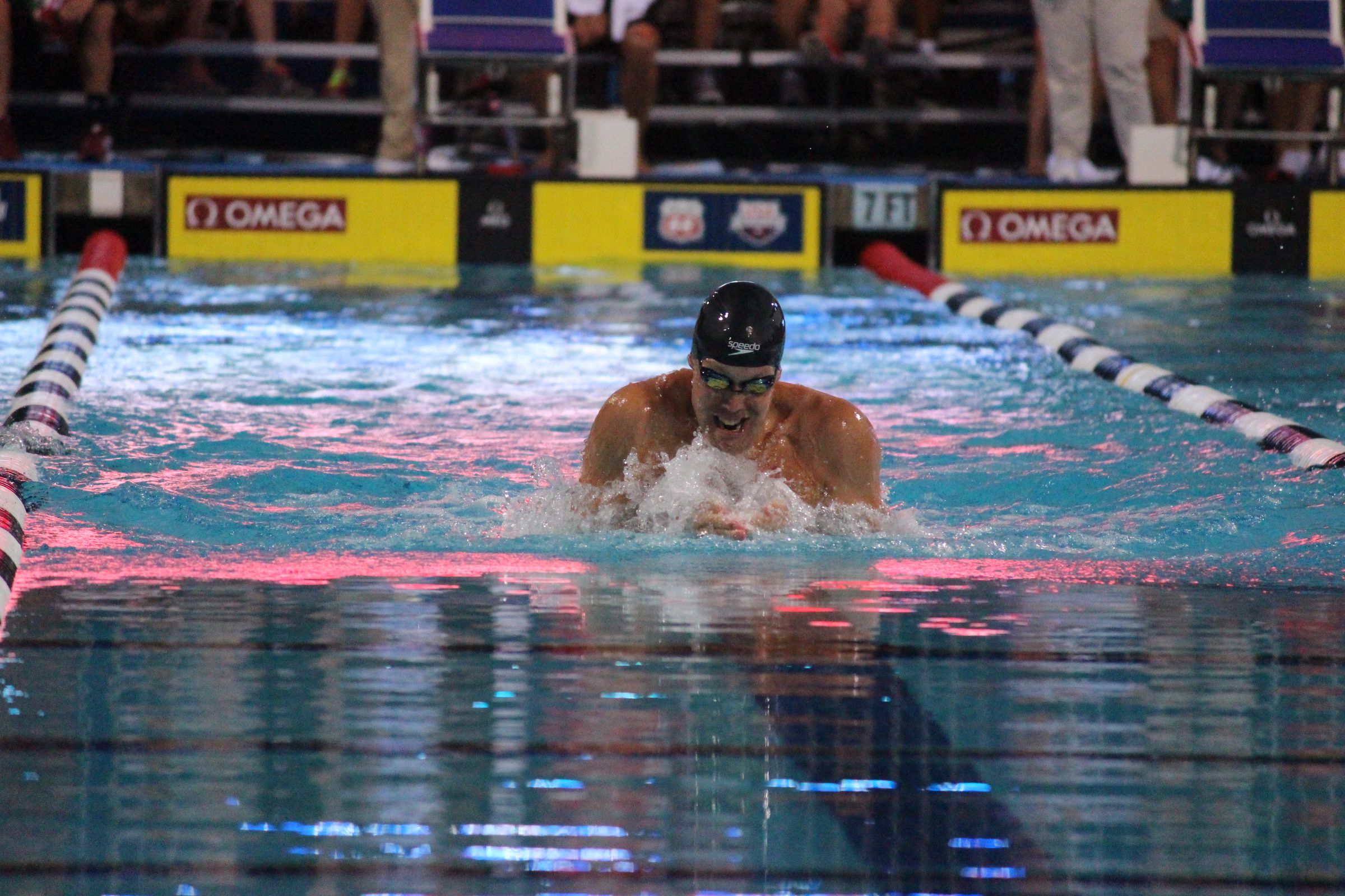 When the 100 breaststroke came up on the schedule, McHugh had made a name for himself. He was coming back second to Kevin Cordes, who most people considered the favorite in the event. Unlike the 50 breast, where his goal was to win, McHugh’s objective was to make the National team and try to make Pan Pacs or Pan Ams.