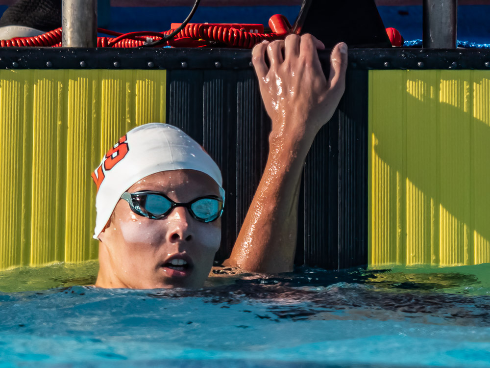 By dipping under the 3:50 barrier for the first time, Mijatovic took down the 2002 NAG mark of Larsen Jensen in the 15-16 classification. Twenty-two years ago, Jensen set the record at 3:50.68. Mijatovic easily lowered that record, as he went through the 100-meter mark at 55.77, touched midway in 1:54.43 and was at 2:52.86 at 300 meters. Mijatovic covered the last 100 meters in 56.38 to earn his first NAG record since moving into the 15-16 age group.
