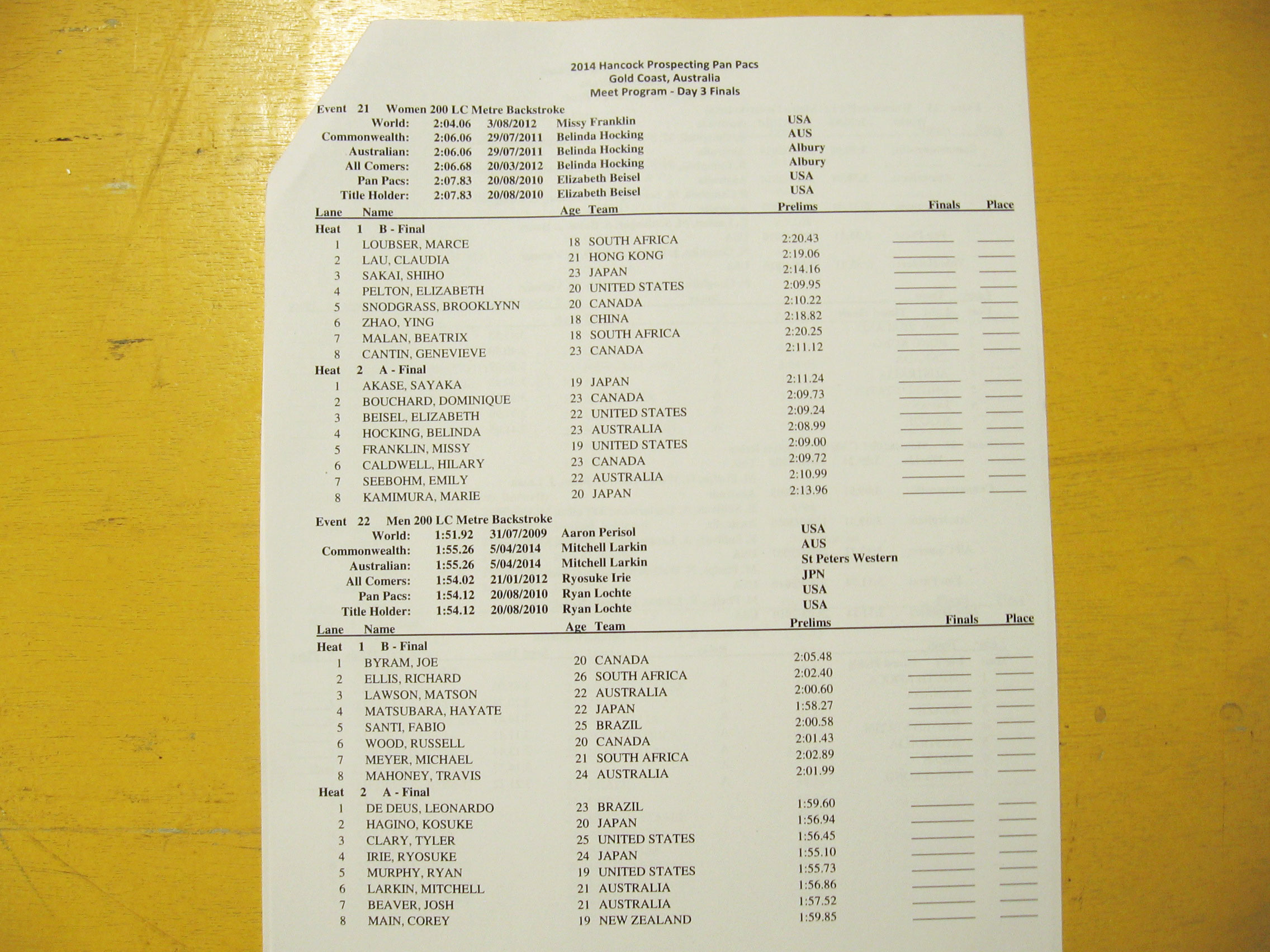 With Ryan Lochte scratching from the 200 back prelims this morning, Tyler Clary and Ryan Murphy will be the Americans flanking Japan’s Ryosuke Irie tonight. Irie is looking for a sweep of the backstrokes after winning the 100 on Thursday.