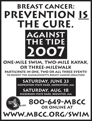 Against The Tide is a one-mile swim, two-mile kayak and three-mile fitness walk to benefit the Massachusetts Breast Cancer Coalition (MBCC). This fun and inspirational program brings together swimmers, kayakers and walkers of all ages and abilities who would like to join MBCC in efforts to eradicate the breast cancer epidemic.