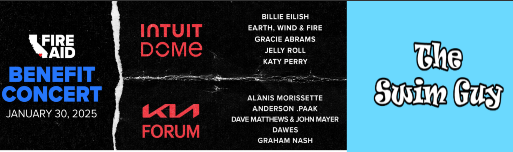 Last Night’s The FireAid Concert is another big way to help. This event will bring the LA community together with music and donations to support families who lost everything in the fires. Music fans and the swim community are working as a team to bring back hope and normal life for those impacted.