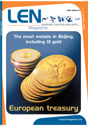LEN Magazine is the official publication of LEN, the Ligue Europeenne Natation, the governing body of European aquatics. The newest issue recaps Europe's dominance at the Beijing Olympics, where 18 gold medals were won in swimming, synchronized swimming and water polo.