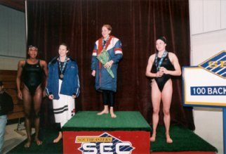 Perhaps her teammates were unaware of her country's geographic whereabouts but there was no doubt as to Coventry's presence in the pool. At SECs she turned more than a few heads (presumably including Marsh's and Brackin's) with her 53.82 Tiger school-record to win the 100 back, and finished a close second to teammate Margaret Hoelzer, also a froswoman, in the 200 back (1:55.35-1:55.39).