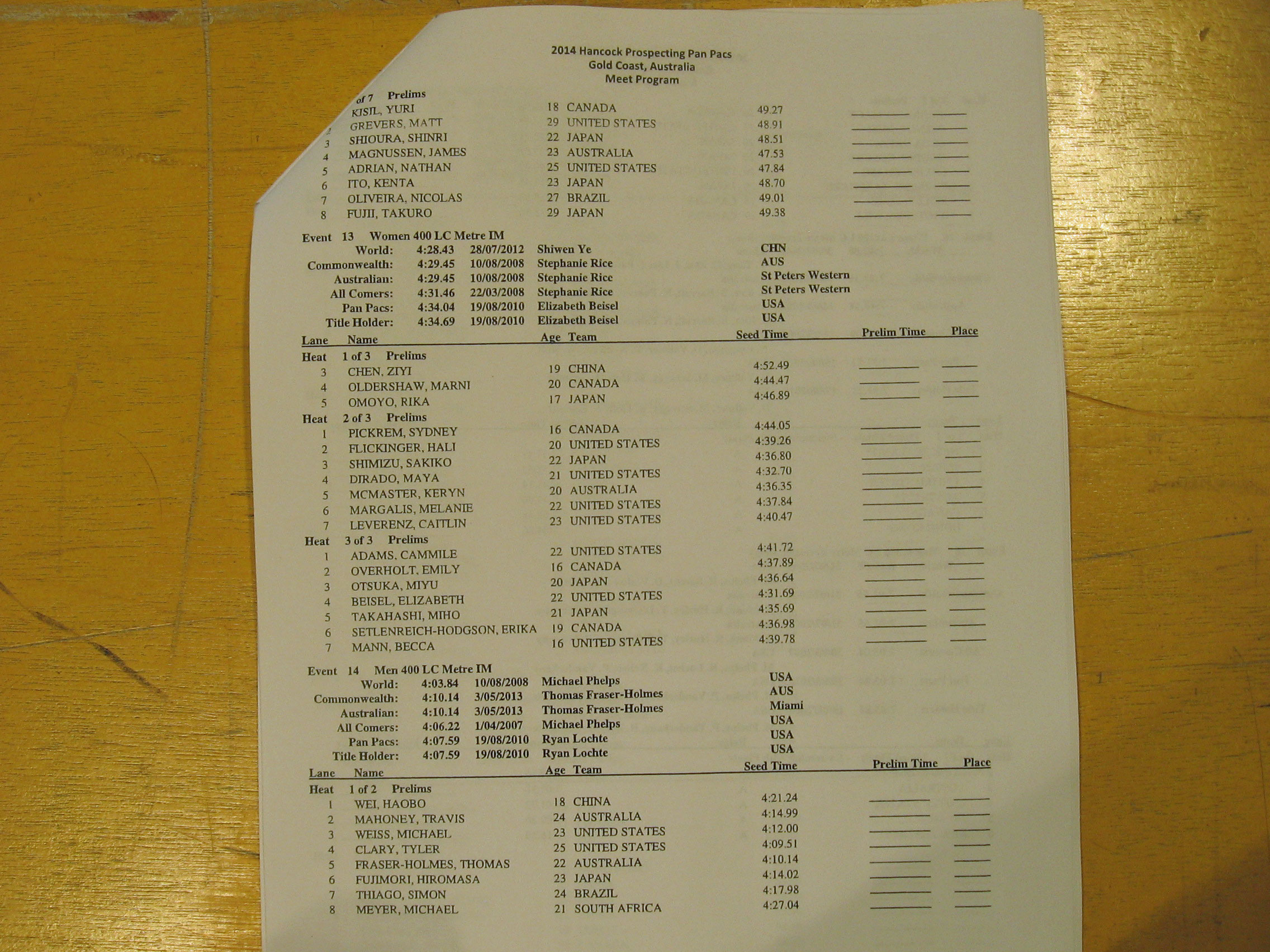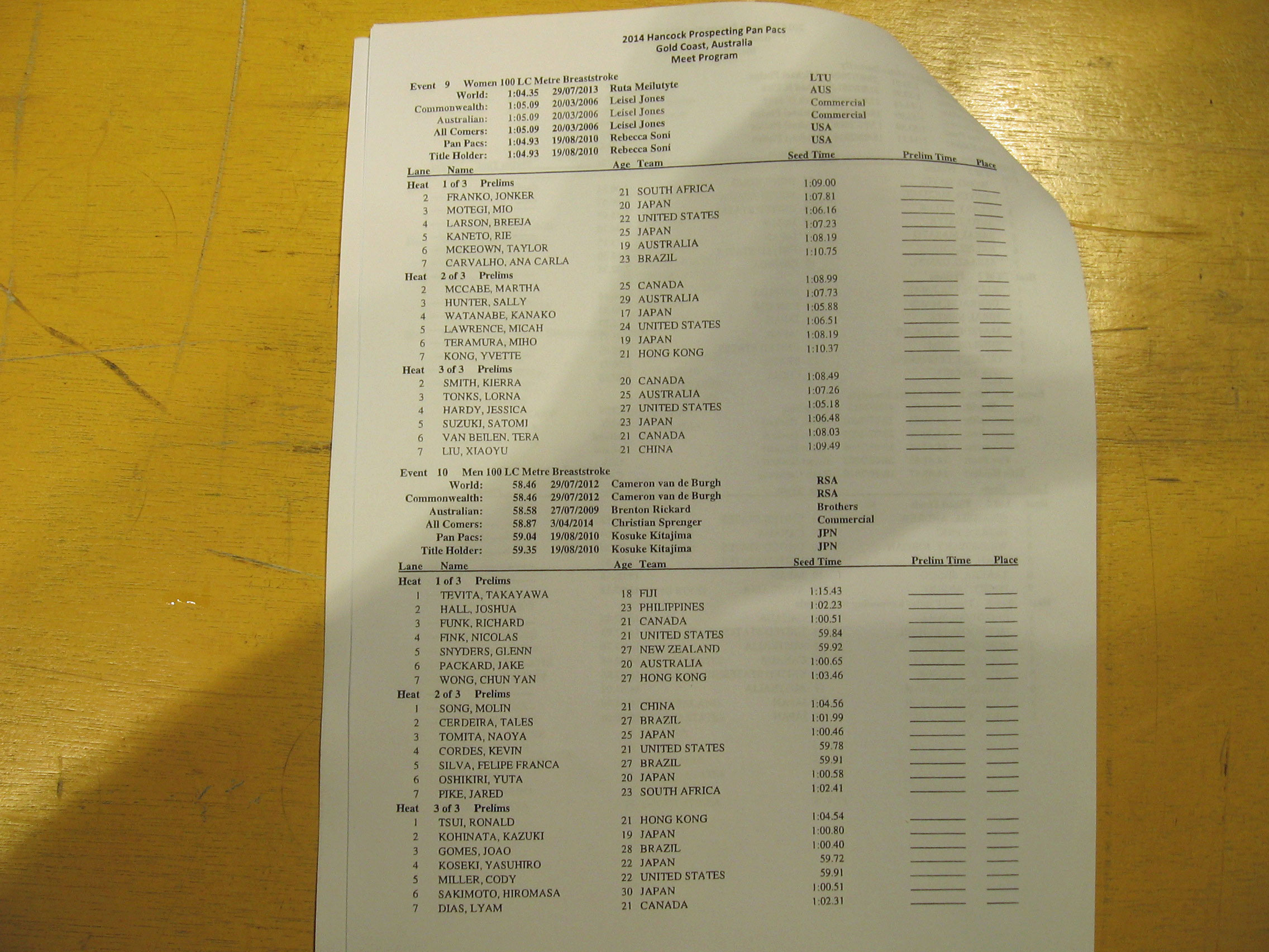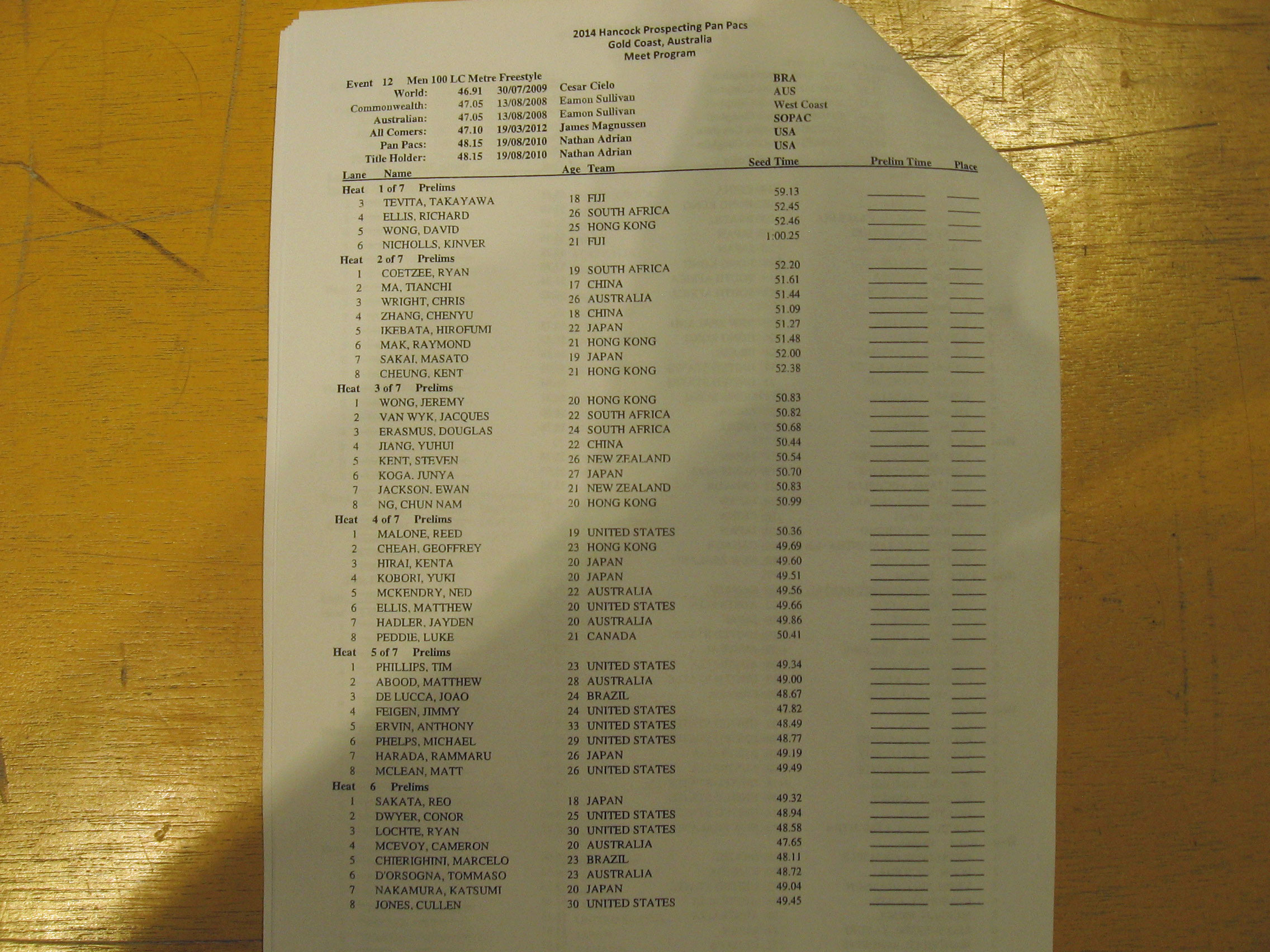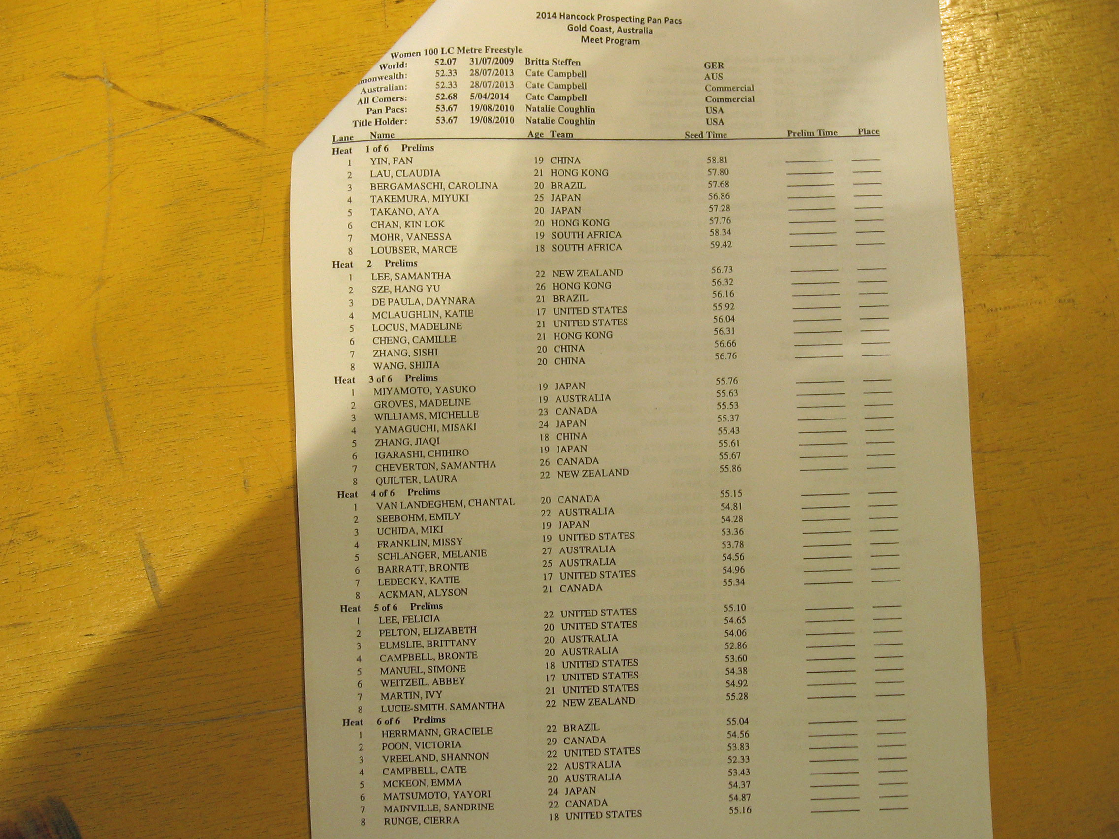 Click the photos below to see enlarged versions of the heat sheets! The session begins at 10 am local time.