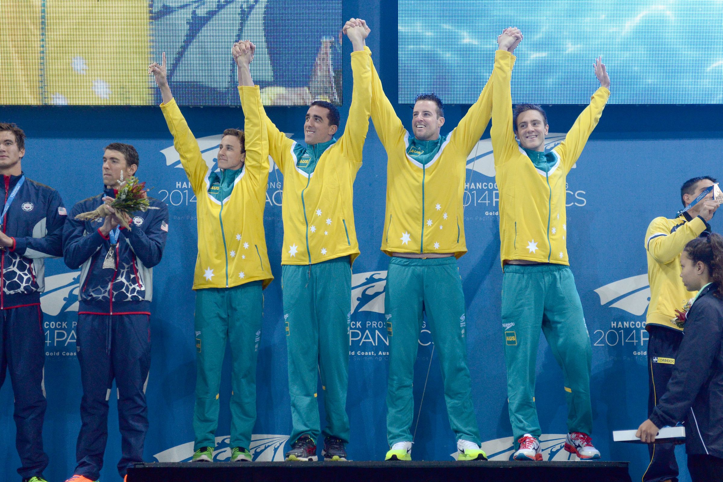 GOLD COAST, Australia, August 23. It was a night that witnessed the home team sweep the 400 free relays, and Michael Phelps return to the top of the international podium individually at the Pan Pacific Championships. Swimming World photographer Delly Carr was there to see it all.