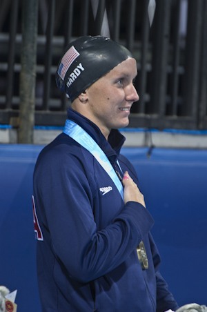 Hardy clocked a blazing fast time of 30.03, the third fastest time ever and the quickest in a textile suit. Hardy owns the top two times ever of a 29.80 and a 29.95. Hardy also demolished Yuliya Efimova's 2010 top-ranked time of 30.29 set at the European Championships.