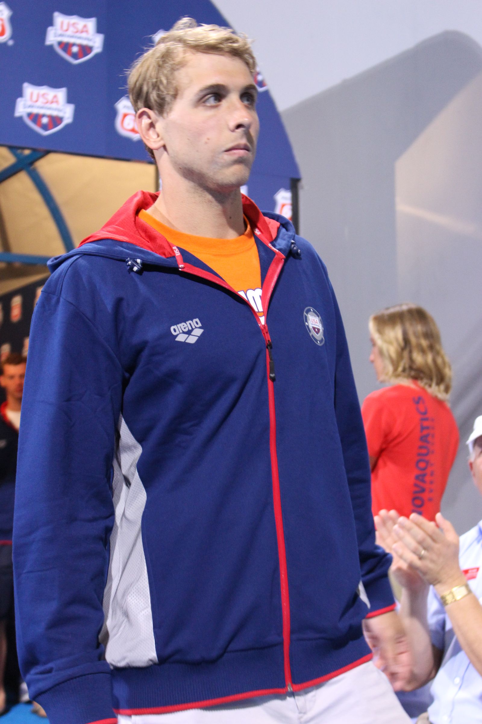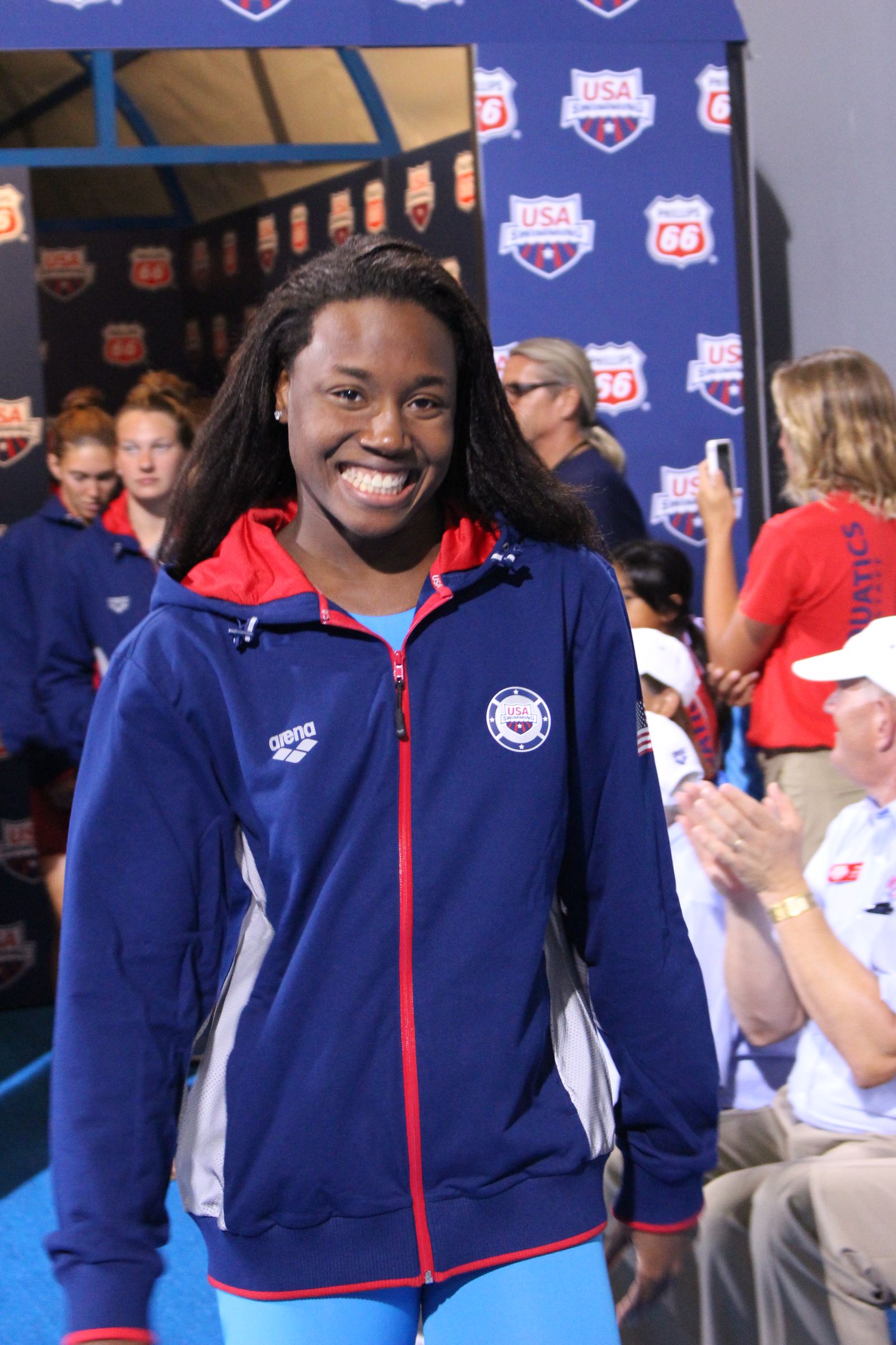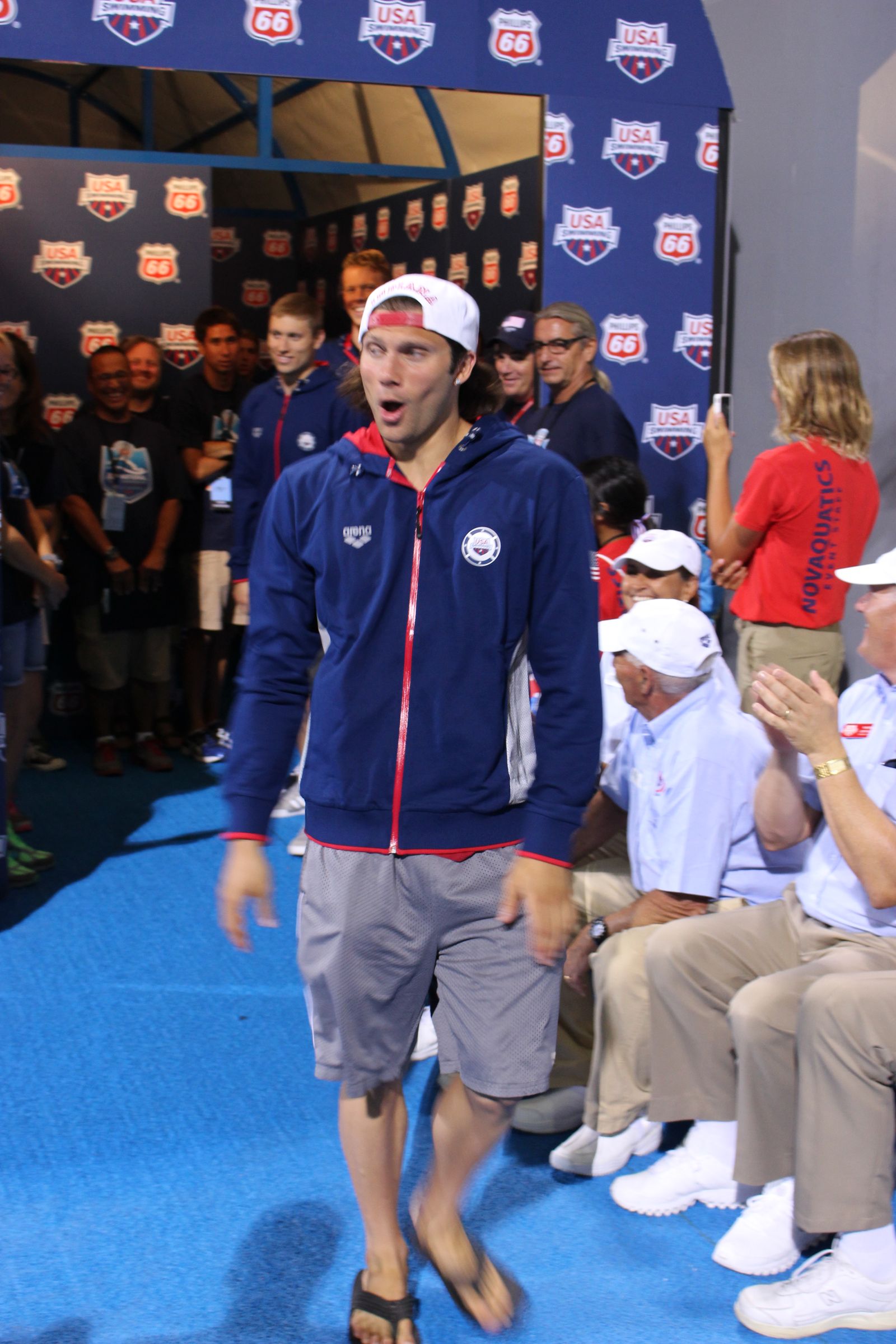 IRVINE, California, August 12. Sunday night featured the pinnacle of some swimmers’ careers as Team USA was introduced at at the USA Swimming Senior Nationals ahead of the Pan Pacific Championships. Here’s an awesome gallery from that team announcement by Swimming World photographer Griffin Scott.