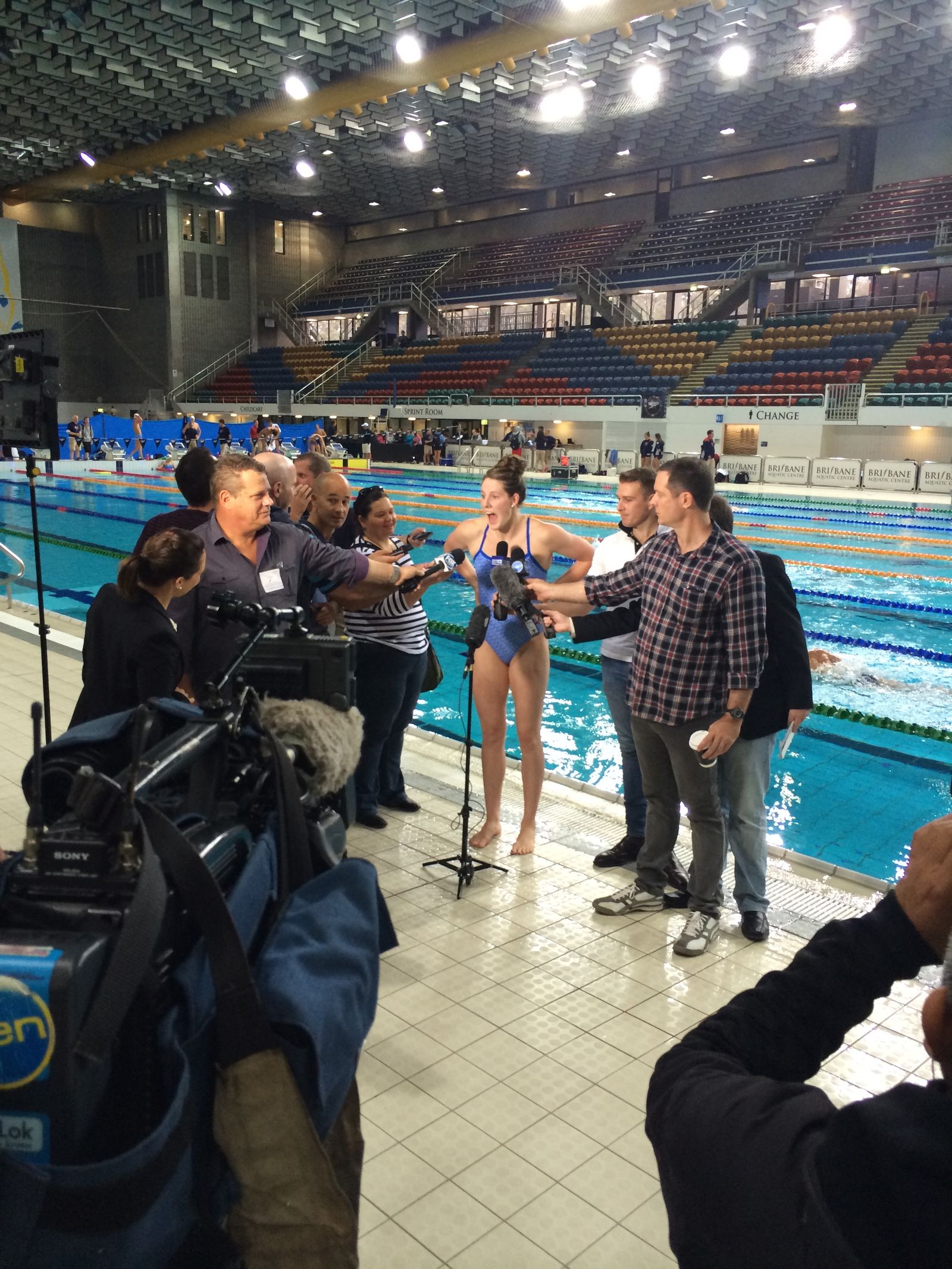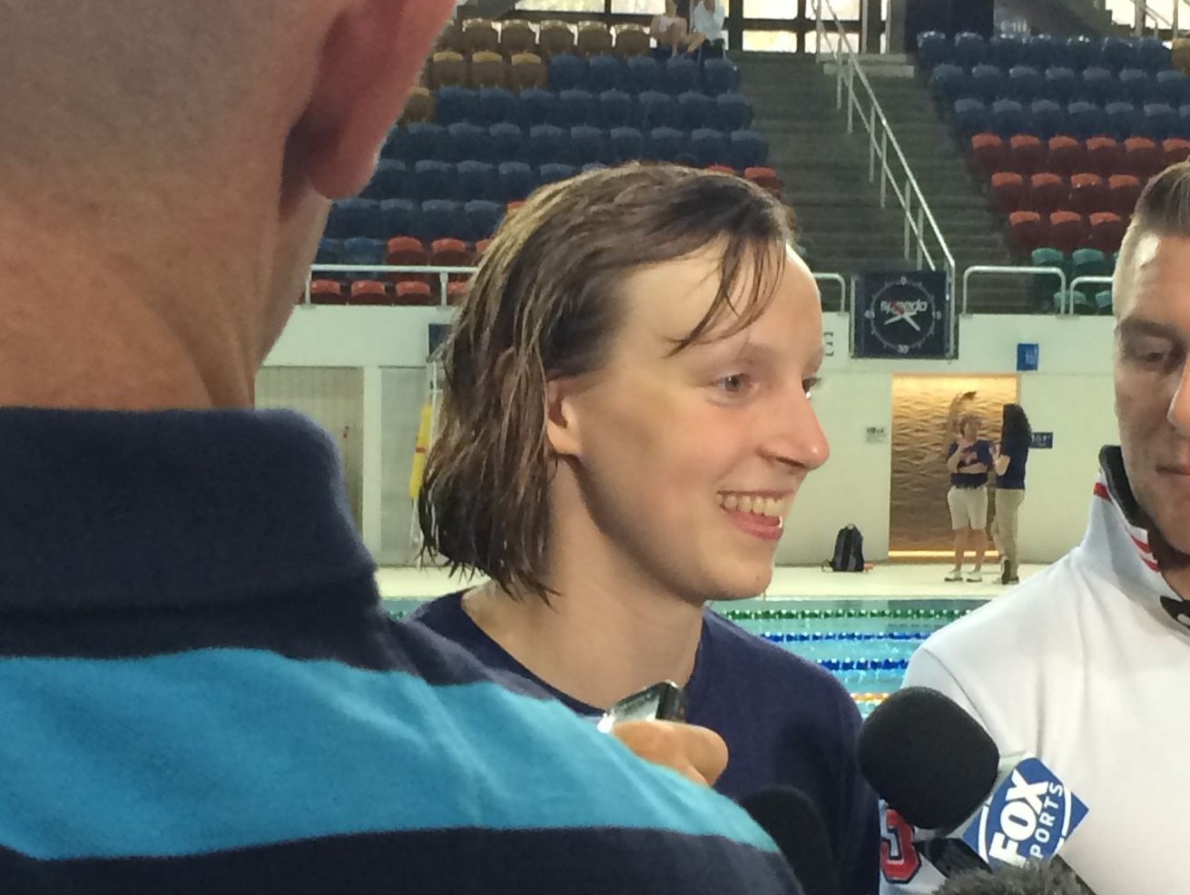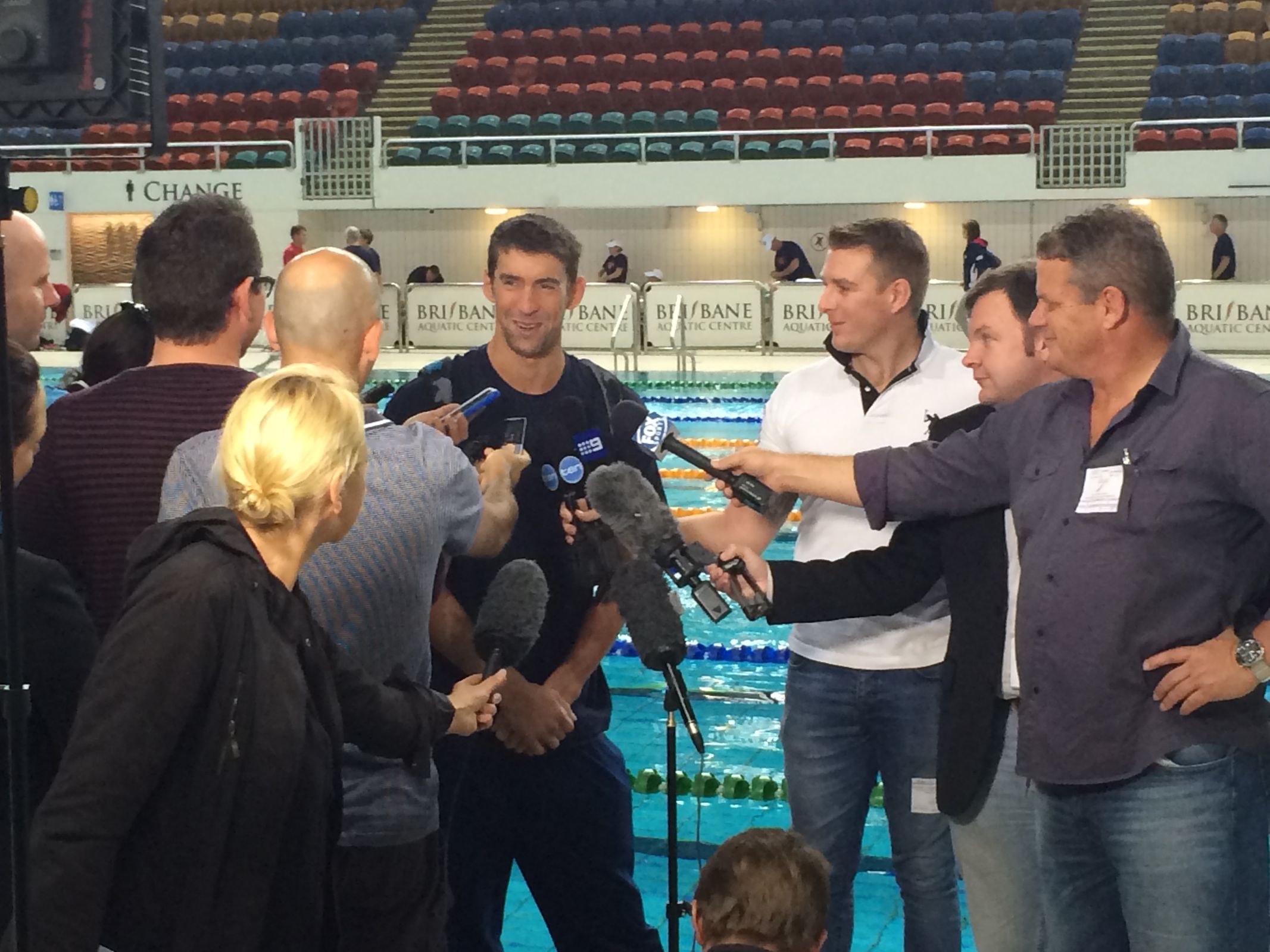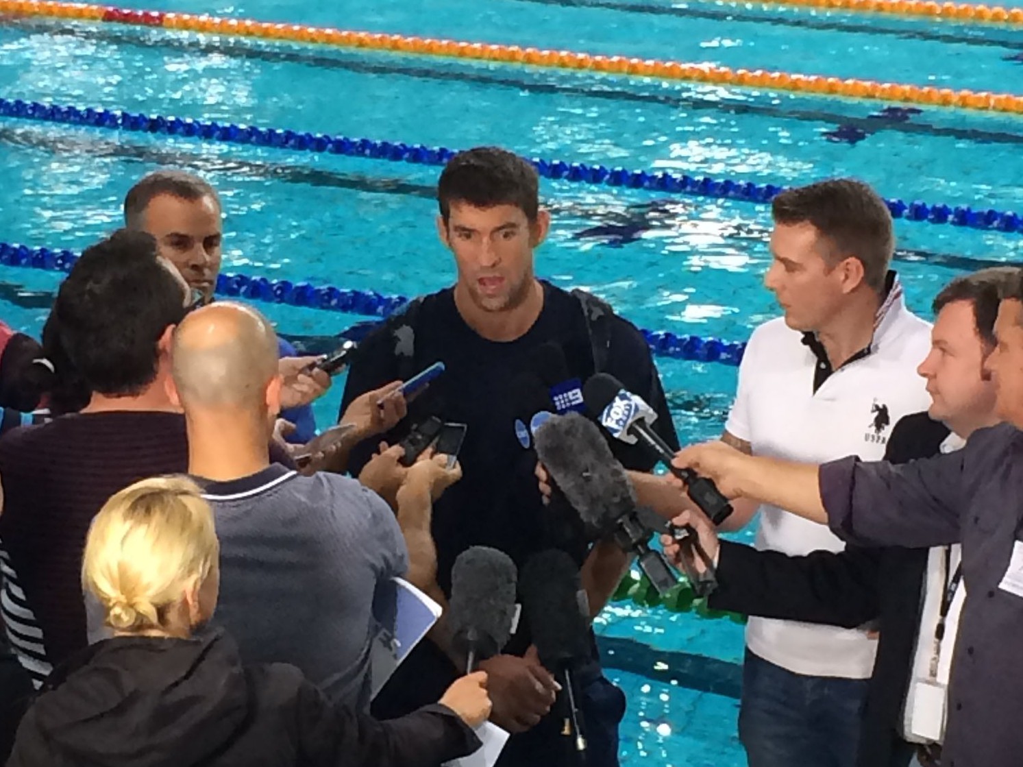 Michael Phelps, Missy Franklin, Ryan Lochte and Katie Ledecky managed to coax an Olympic-level turnout from the local media, while Nick Thoman accepted Cullen Jones’ ALS Ice Bucket Challenge while on deck. Additionally, Pan Pacifics media manager Ian Hanson, who also is a Swimming World correspondent, procured some great shots of the venue for us.