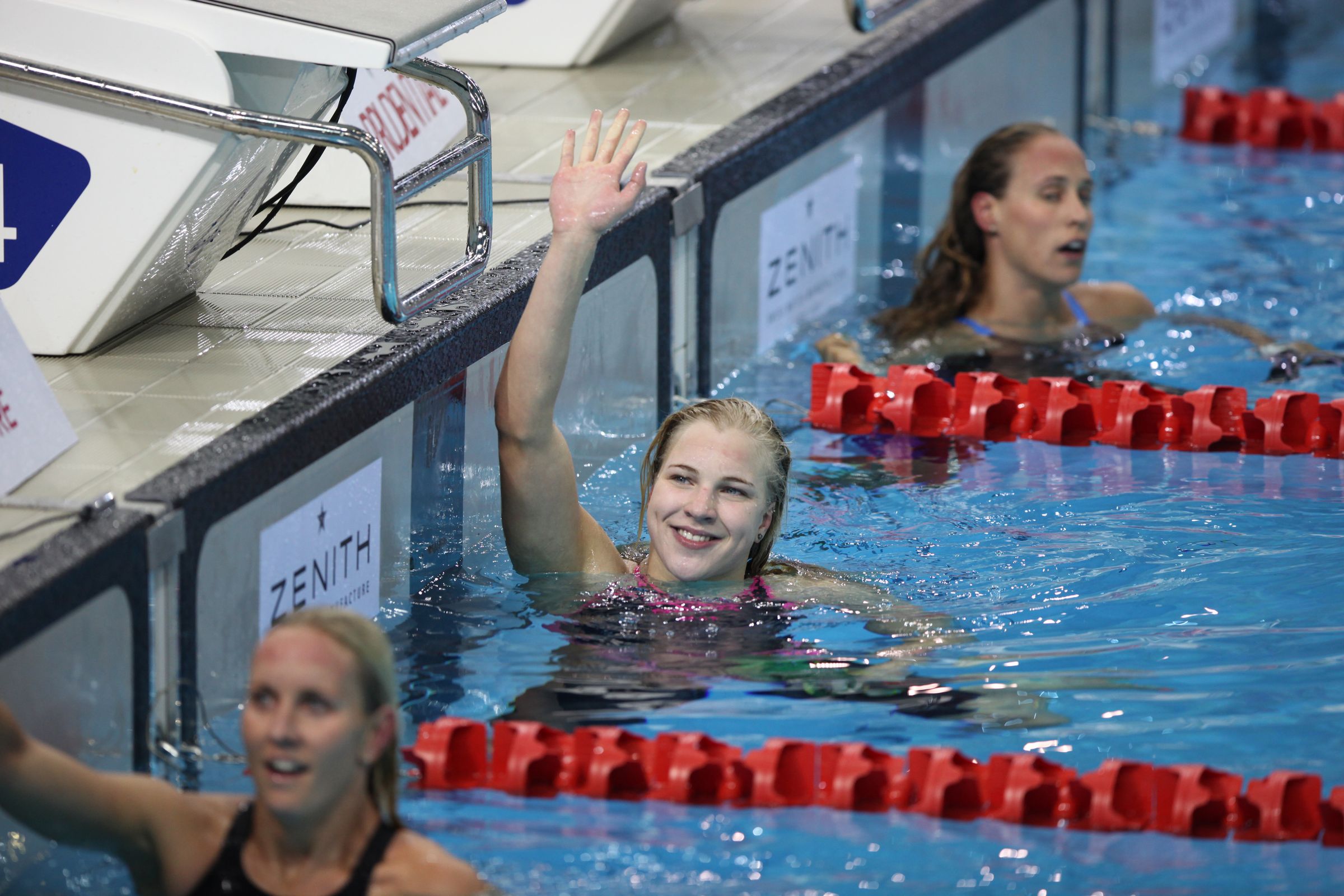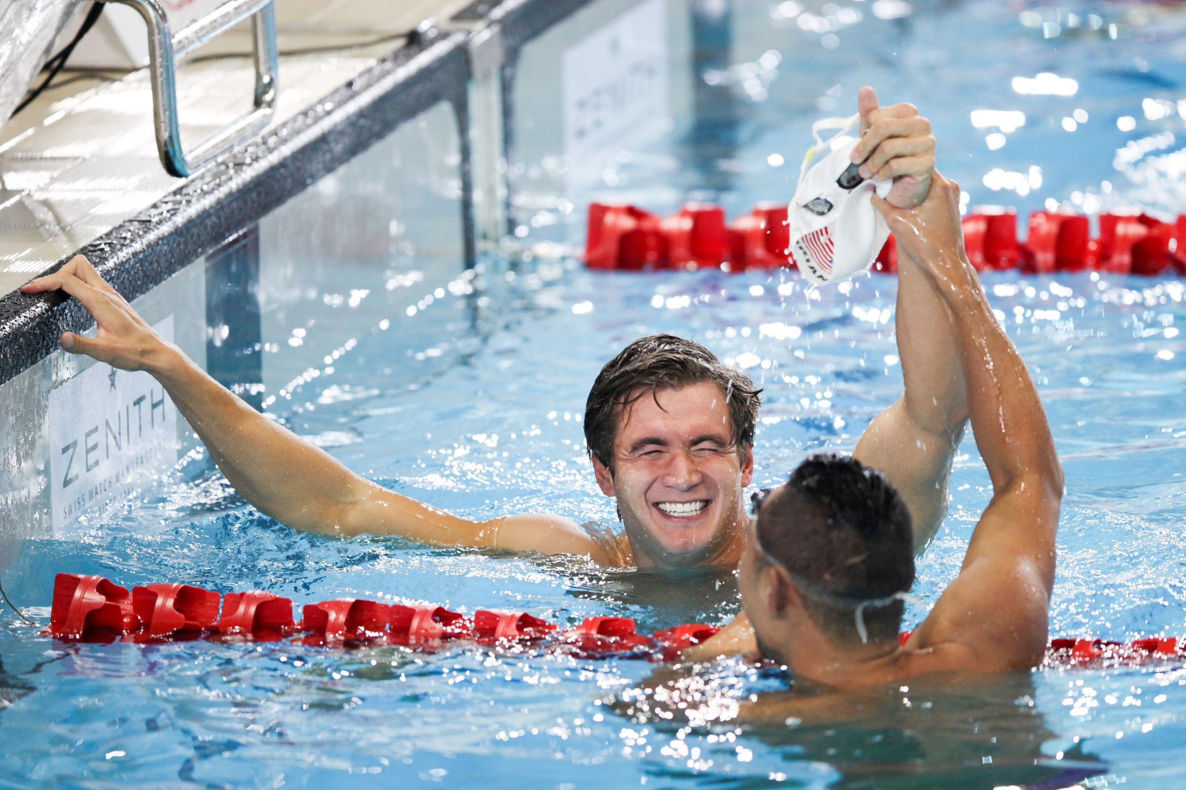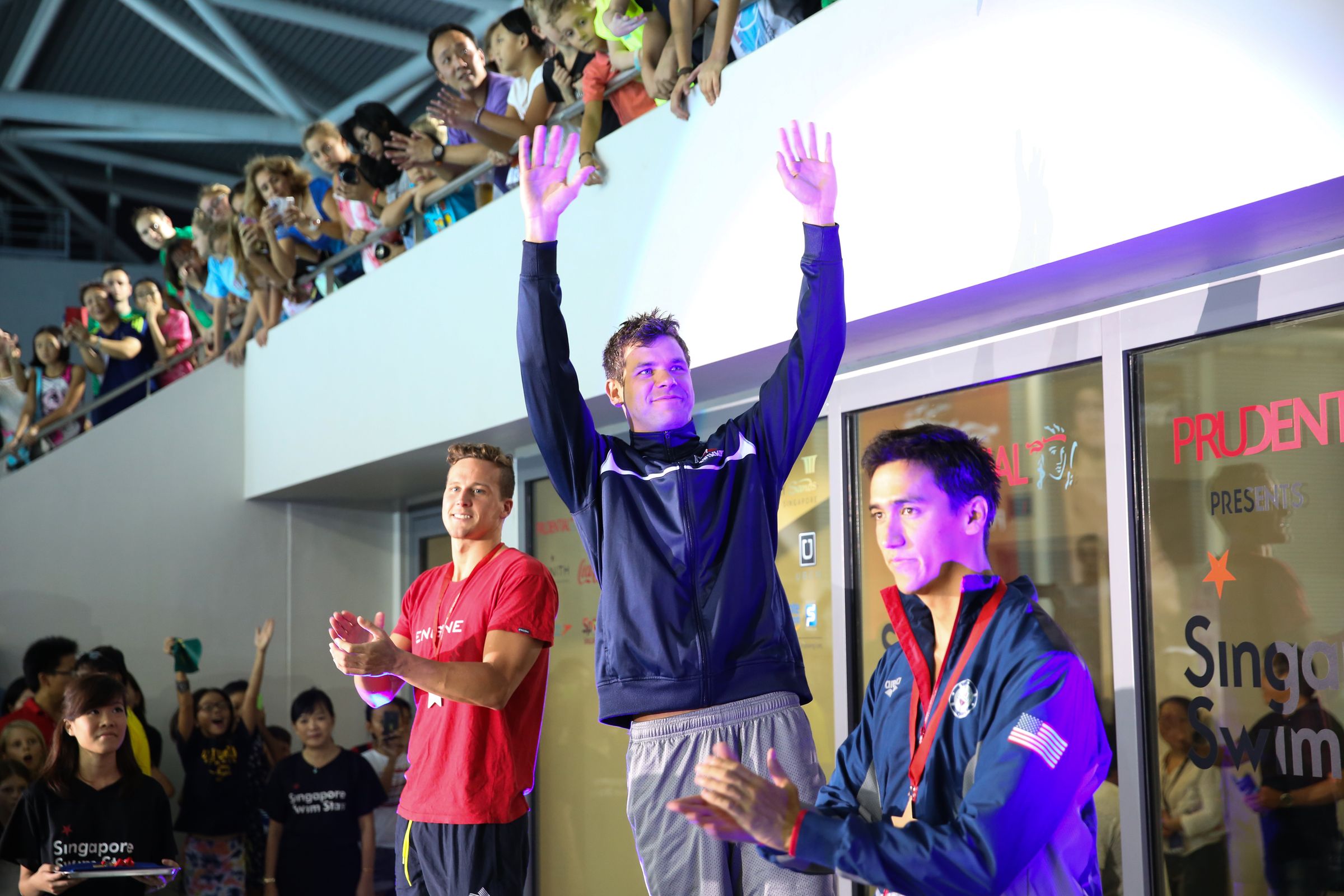 Thanks to meet organizers and official meet photographer Norman Ng of Action Images, we have a chance to show you some of the best images from the amazing competition. The meet, part of a three-day swimming-focused event that will feature clinics tomorrow and an open water event on Sunday, also had some exhibition synchronized swimming.