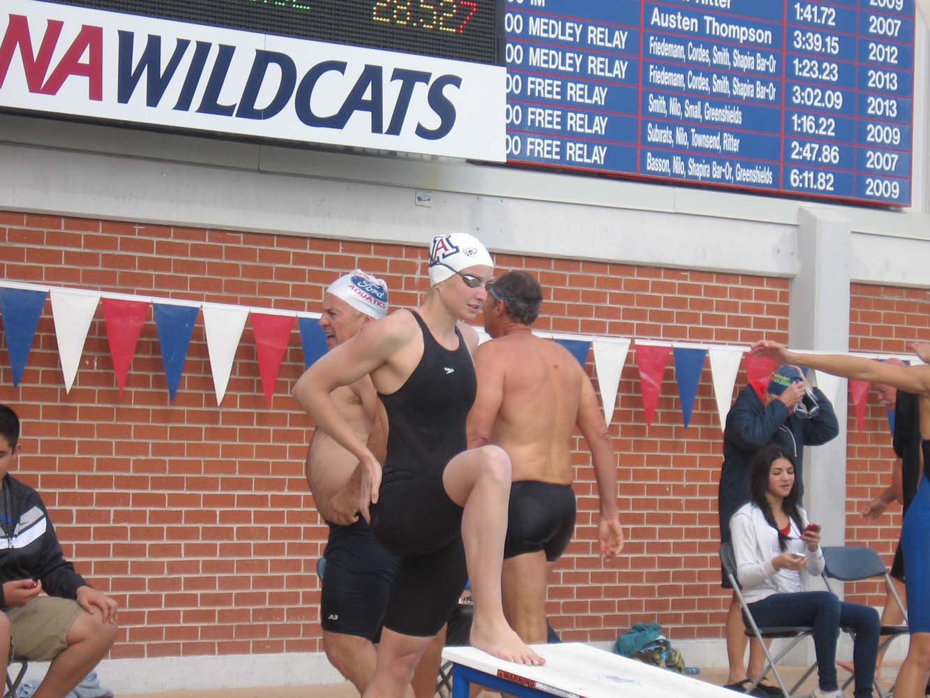 Sunday’s swim meet was highlighted by the appearance of two NCAA breaststroke national champions. Eetu Karvonen, who won the 100 and 200 breast twice at the NCAA Division II level, is now training for a spot on Finland’s Olympic team. He posted times of 25.32 in the 50 breast and 55.22 in the 100 breast. Annie Grevers, who won the 100 breast as Annie Chandler at the 2010 NCAAs, posted a respectable 1:02.90 in the 100 breast and 29.13 in the 50 breast.