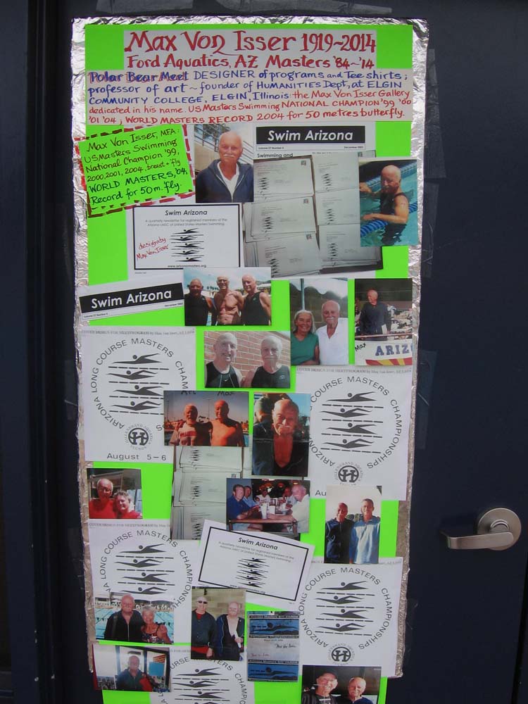 TUCSON – Max Von Isser was one of the most beloved figures in Arizona Masters Swimming. For many decades, his artwork graced not only T-shirts designed for the state championships, but for the monthly newsletters that showed a talent that was overshadowed by his many accomplishments in the pool.