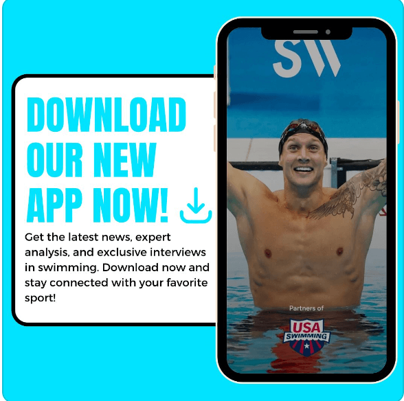- Free App featuring breaking news alerts, meet results, time conversion, and special discounts at SwimShop ($25 value).