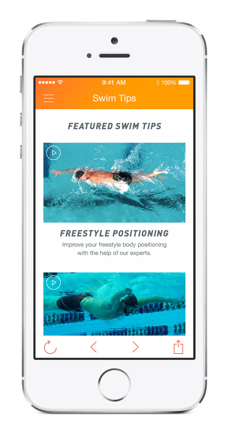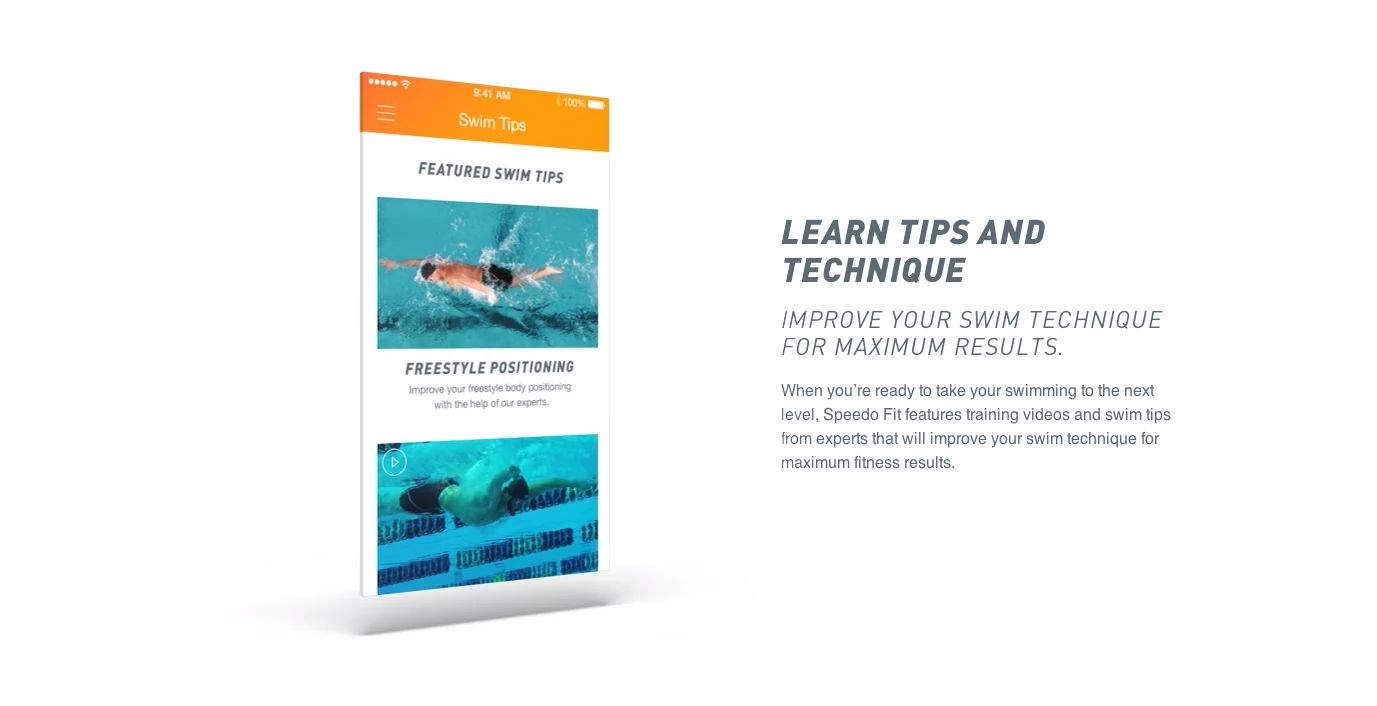 LEARN TIPS AND TECHNIQUES, with featured videos and tips designed to help users improve their swim technique for maximum results. When you’re ready to take your swimming to the next level, Speedo Fit includes training videos and swim tips from experts – featuring some of Team Speedo USA’s biggest stars including 12-time Olympic medalist Natalie Coughlin, four-time Olympic medalist and mom Summer Sanders, 11-time Olympic medalist Ryan Lochte, three-time Olympic gold medalist Nathan Adrian, Olympic gold medalist Jessica Hardy, and Olympic gold medalist Tyler Clary – that will improve your swim technique for maximum fitness results.