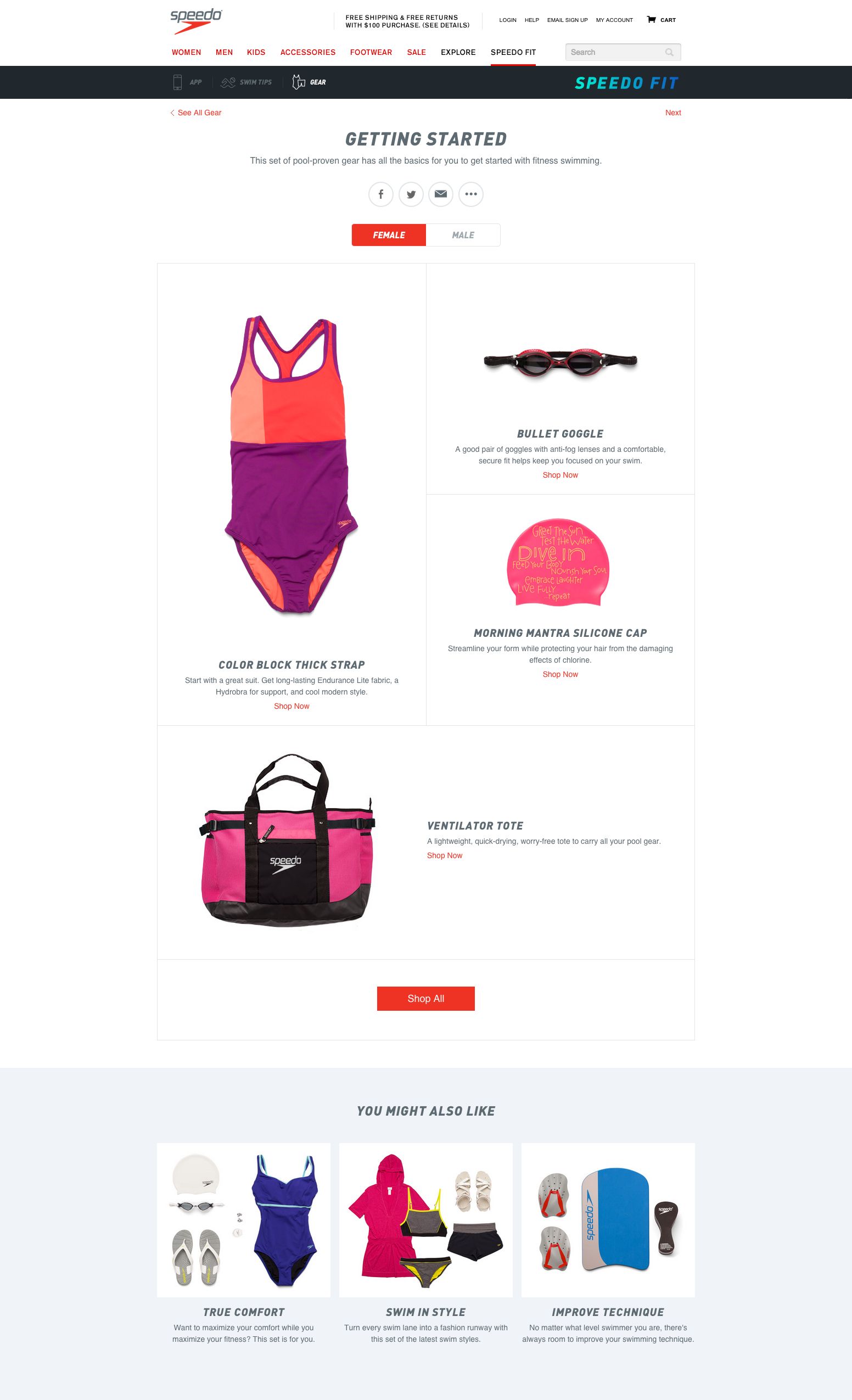 AND GEAR UP, helping fitness swimmers find the right gear based on their individual needs. Whether you’re just getting started in fitness swimming, looking for the right training aids to improve technique, a frequent swimmer looking for products that will last, or wanting to train like the pros, the Gear section has curated Speedo product sets to improve your swims.