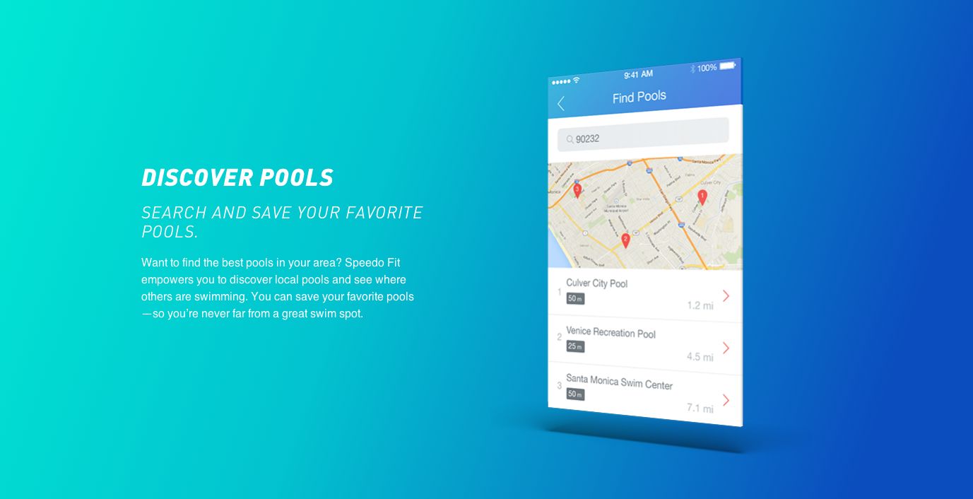 DISCOVER POOLS, by searching and saving your favorite pools. Speedo Fit helps you to locate local pools, find pool info (from hours to pool length and contact info), and see where others are swimming so that you can save your favorite pools – and never be far from a great swim spot.