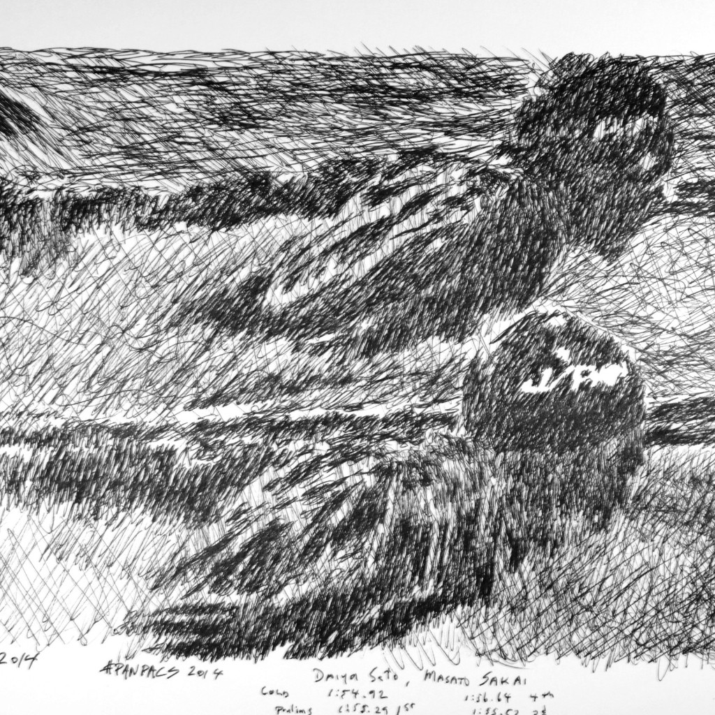 Niles, who is a rabid fan of the sport of swimming that watches live streams with the best of them, has found a bit of a following on Twitter this summer after he started posting his hand sketches of the sport. He finds inspiration either from particular images on live streams, pictures posted on Twitter or other images published by Swimming World. The key is just how fast he is at reproducing an image in a hand-sketch format.
