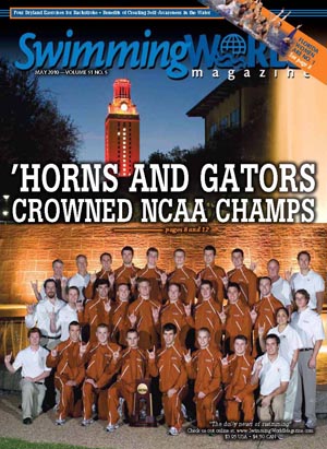 These performances earned Texas and Florida spots on the May cover of Swimming World Magazine.