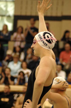 Mary says that she likes to "stand up tall on the blocks right before the start of the race when everyone else is bent over. It gives me a great look at the pool and gives me confidence."