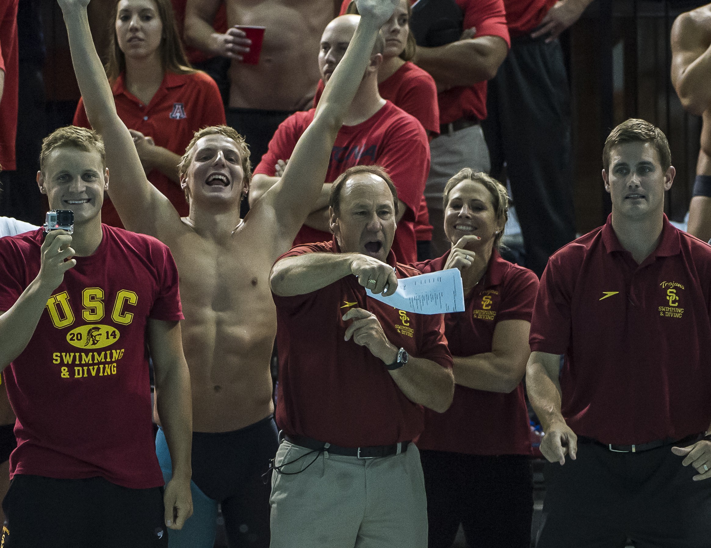 In an incredibly close meet this past weekend the No. 12 USC Trojans pulled off an amazing upset against the No. 2 California Golden Bears, winning the dual meet by just a single point. Coming down to the last relay, the one point victory was the first win for the Trojans over the Golden Bears in a staggering sixteen years. The final score of the meet was 149.5-148.5. California started the meet off with a victory in the 200 medley relay, but USC kept chipping away with event win after win, punctuated with a 1-2 finish in the 50 freestyle before the first break. Cal fought back in the second half of the meet, claiming first in every event but the 500 free, but a USC sweep of both boards kept the meet close, leaving the final relay as the deciding factor. The USC 200 free relay of Ralf Tribuntsov, Reed Malone, Mortem Klarskov, and Kyle Grissom touched just four one-hundreths ahead of the Cal team of Ryan Murphy, Tyler Messerschmidt, Justin Lynch, and Andrew Seliskar (1:20.32 to a 1:20.36) to secure a Trojan victory. Both teams will meet again at the Pac-12 Championships in Federal Way on March 2nd.