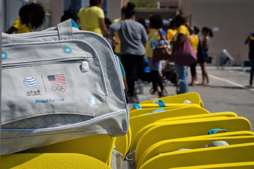 As the title sponsor of this event, AT&T generously provided the women with a collection of swim gear as well as the tickets to Saturday and Sunday finals at the Woollett Aquatics Center. USA Swimming suit sponsor, TYR also provided the bathing suits for the women.