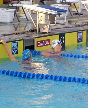 Meanwhile, Whitney Myers clocked a second-place 2:12.85, while Ariana Kukors logged a third-place 2:13.26. Depending on how much doubling occurs throughout the World Championship team selection process with Hoff qualifying in several events across the board, Kukors may have moved herself into contention for a berth on the squad as her 2:13.26 went under Kaitlin Sandeno’s 2:13.86 recorded at the ConocoPhillips USA Swimming National Championships earlier this month.