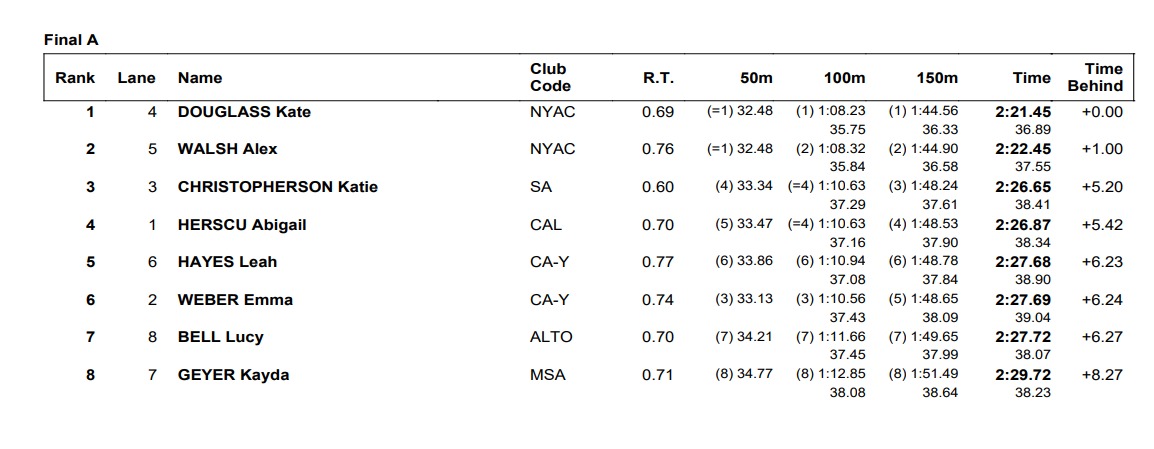 U.S. Nationals Day 2 Finals: Kate Douglass, Alex Walsh Continue to Dominate Women’s 200 Breaststroke
