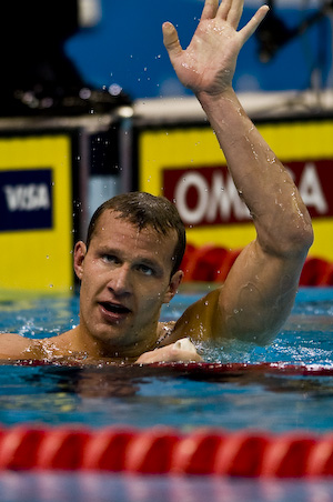 Hansen was coming off a clocking of 59.24 in the semifinals and there was the thought that he'd challenge the 59-second barrier in the final. That push will have to wait until August. Hansen will take tomorrow off before returning to the pool for the 200 breaststroke. There, Hansen hopes to regain his world record from Japan's Kosuke Kitajima, who went 2:07.51 a little more than three weeks ago.