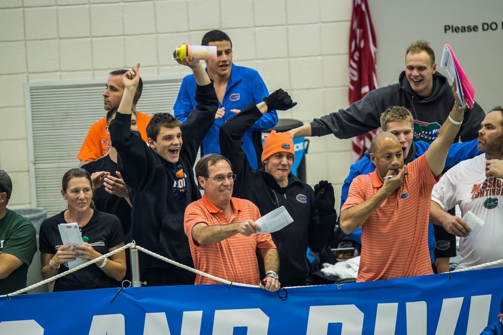 Florida swept the one-meter and three-meter diving events (the only diving on the program this weekend). On the women’s side, Teya Syskakis posted a winning scores of 259.43 in the one-meter, while teammate Miranda Goss took first in the three-meter. On the men’s side, Samuel Smith dominated, scoring 350.18 on the one-meter and 338.03 on the three-meter.