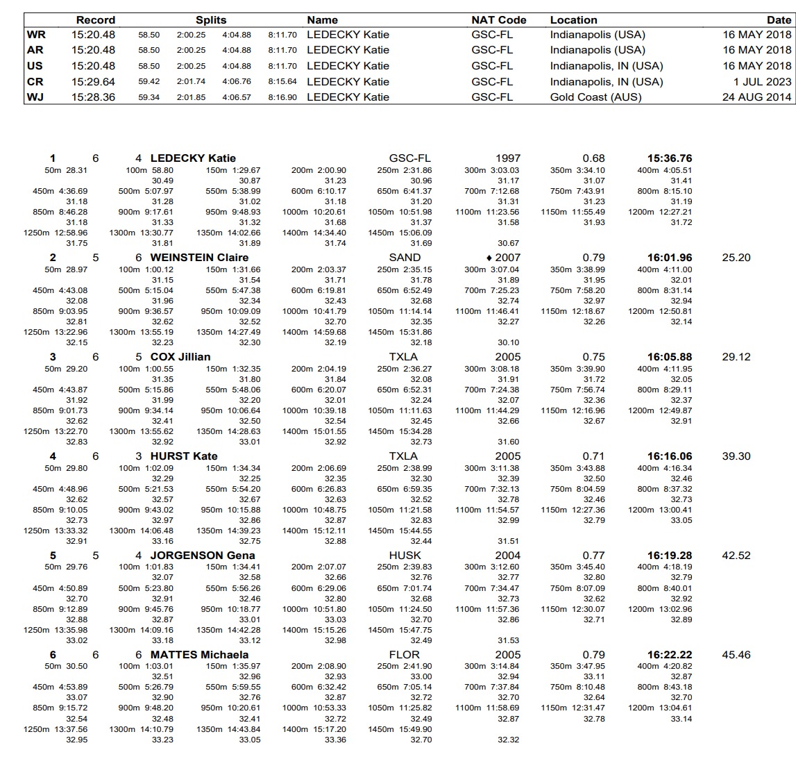 Of course part of that was because Claire Weinstein went a 16:01.96 from one of the early heats.