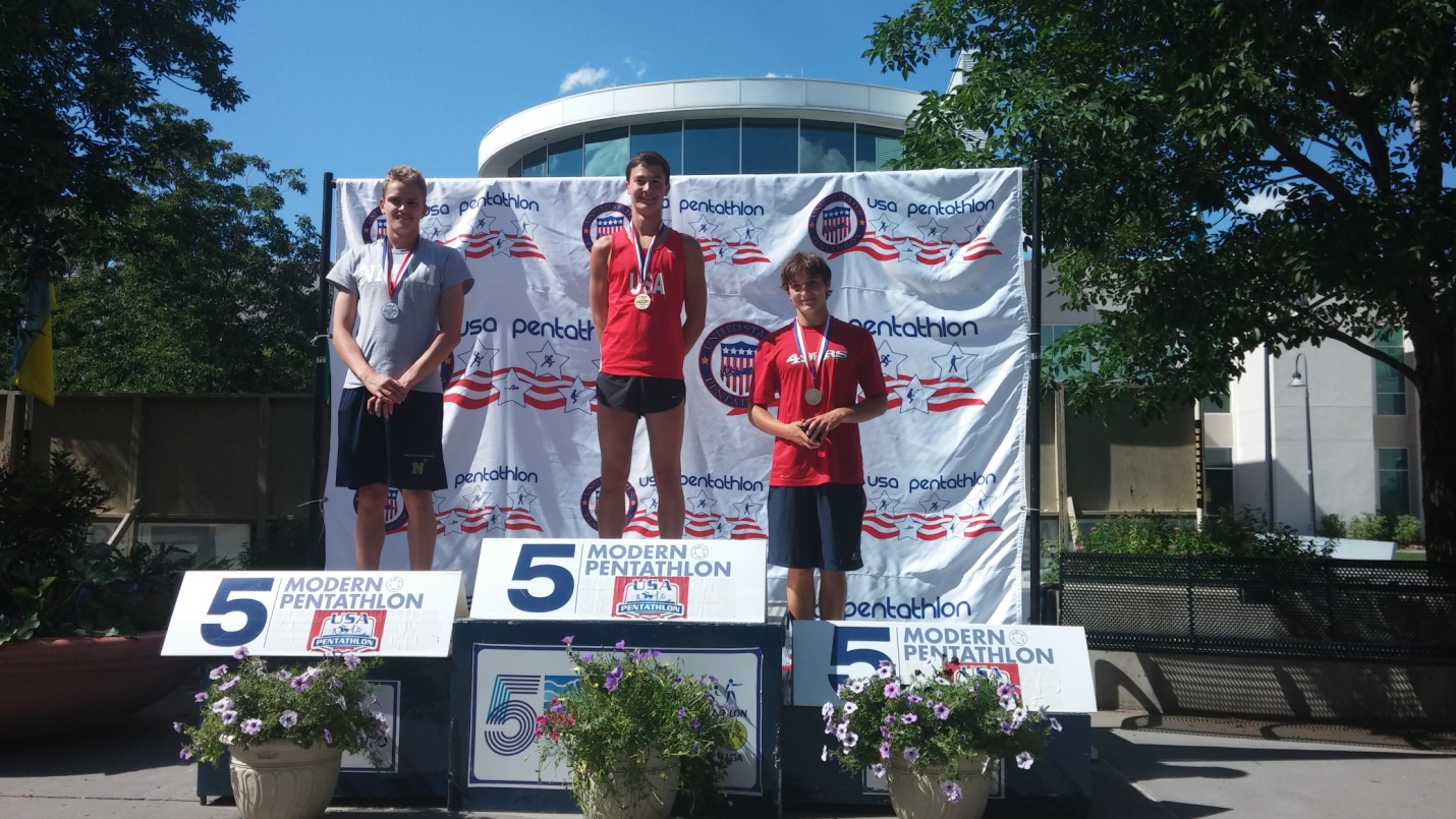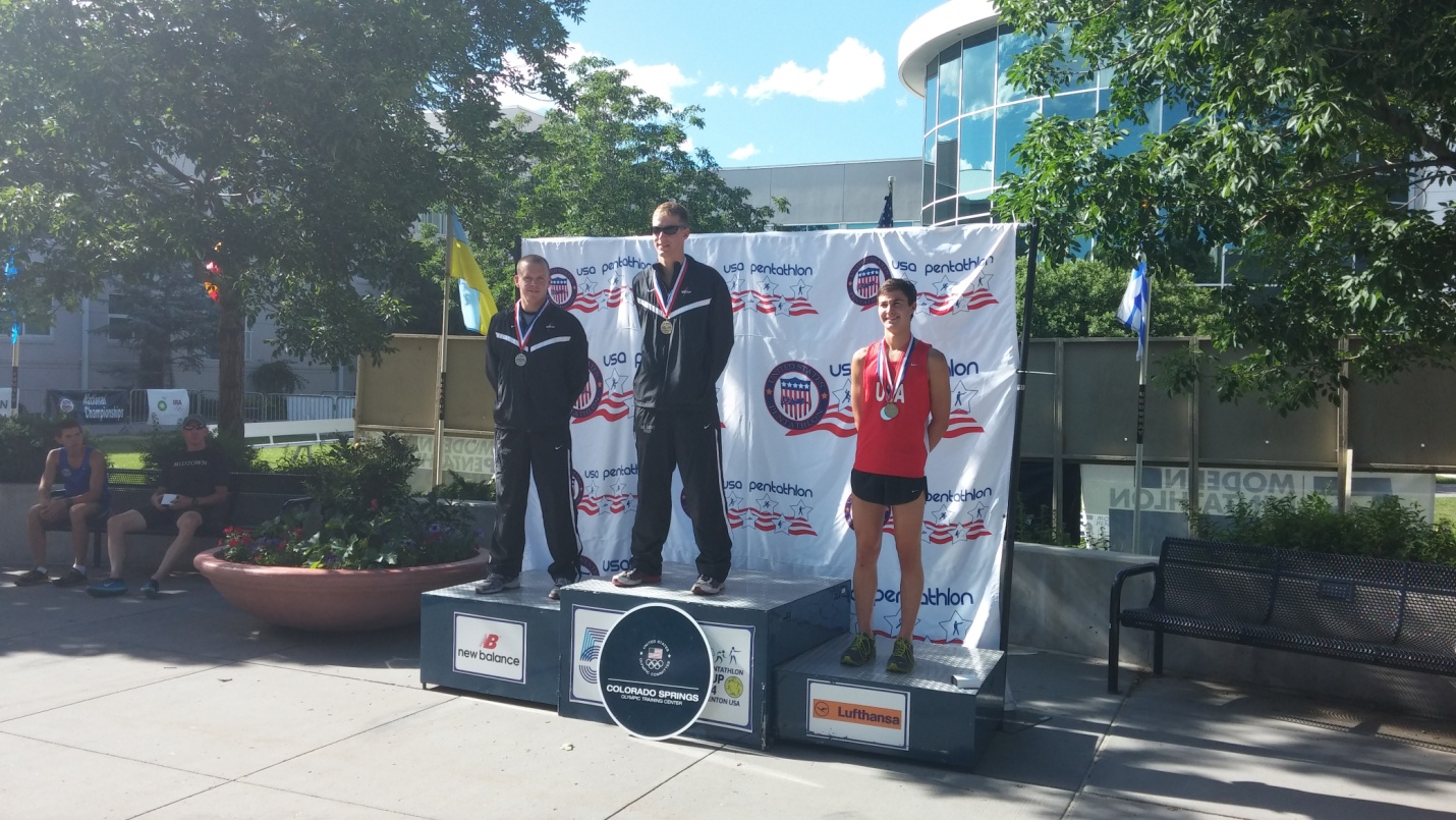 Three medalists at USA Pentathlon Nationals: Nathan Schrimsher (gold), Dennis Bowsher (silver), and Brendan Anderson (Bronze)