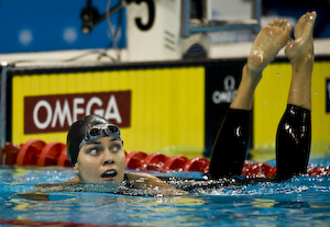 California's Dana Vollmer posted the fastest final 50 meters to claim the title in 58.42. She dropped a 30.54 on the way home to track down both Christine Magnuson and Natalie Coughlin. Magnuson, representing Tucson Ford, finished second in 58.54, while Coughlin, swimming for California in her first meet back after the 2008 Beijing Olympics and a stint on Dancing With The Stars, took third in 58.94. Trojan's Jessica Hardy completed the sub-minute times with a 59.50 after going out in 27.79.