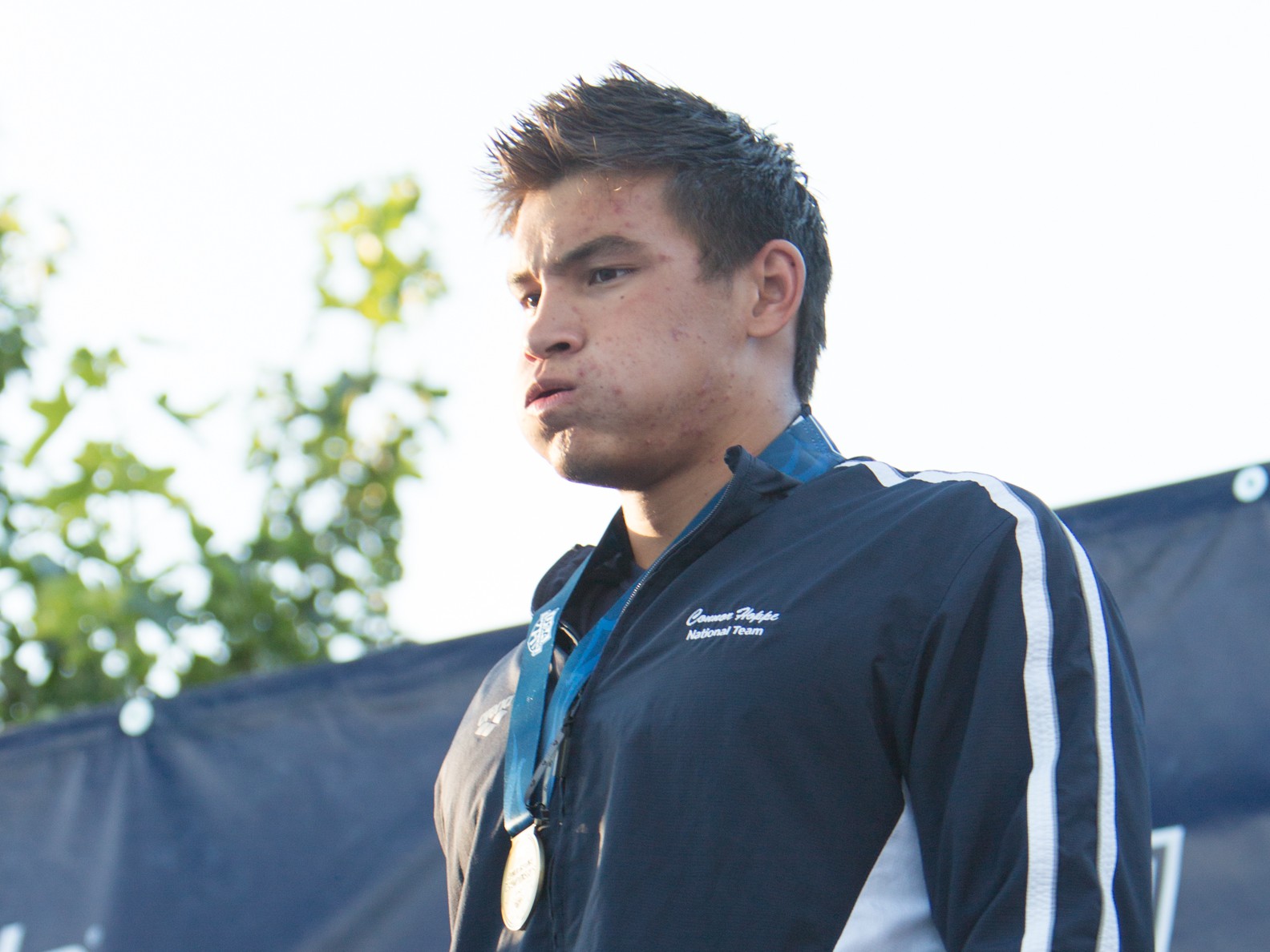 It doesn’t happen often, but it happened tonight as Parkland’s Sam Magnan won the junior national title from the slower seeded heats. That’s a monstrous time drop for Magnan as he came into today with a lifetime best 15:56.56 from last year’s junior nationals. Nitro’s Taylor Abbott gave that winning time a run, and even gave the meet-record a try as he was two seconds under the pace about halfway through the race. But, Abbott settled for silver with a 15:29.88. That’s a huge drop for Abbott as well, down from his 15:43.08 from the Santa Clara stop of the Arena Grand Prix.
