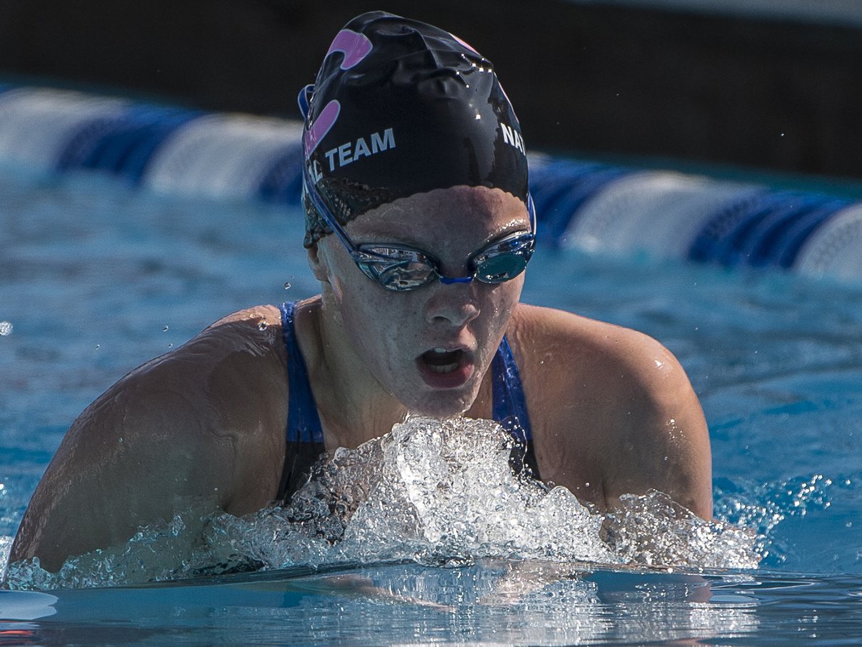 Indiana University’s Stephanie Marchuk (4:14.61), North Carolina’s Madison Homovich (4:14.97), Marlins’ Stephanie Peters (4:15.53), Pleasanton’s Moriah Simonds (4:15.56) and NOVA’s Jessie Gvozdas (4:15.68) also made their way into the championship heat as even a 4:15 was not a guarantee to make the A final. Chenoa Devine (4:15.88) and Taylor Ault (4:15.89) both made the B final with ninth and 10th-place swims.