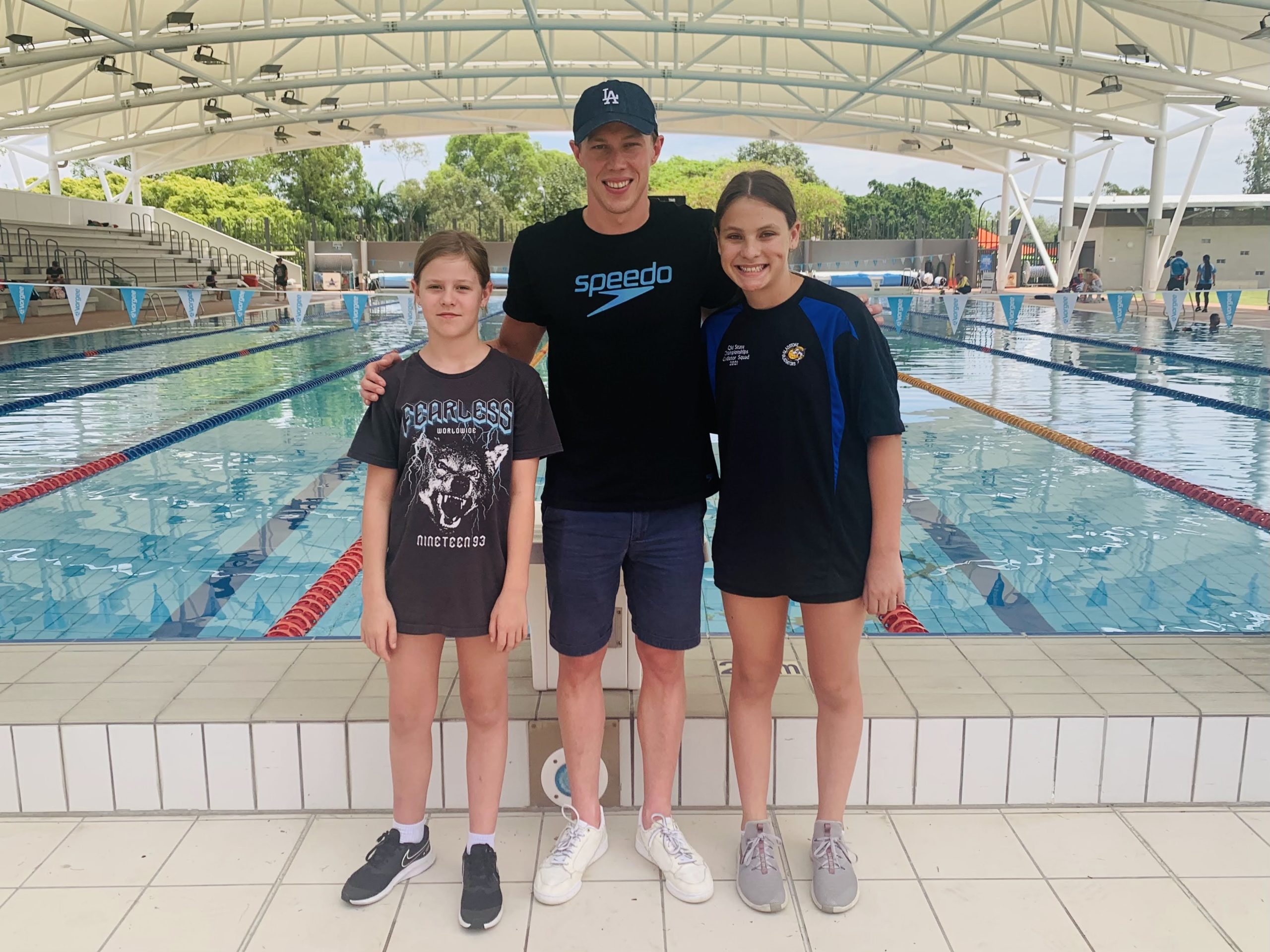 BRIGHT FUTURE: Big moment for seven-time Australian Age gold medallist, Rocky City’s own Taryn Roberts to meet one of her idols, Olympic gold medallist Zac Stubblety-Cook. Photo Courtesy: Central Qld Swimming.